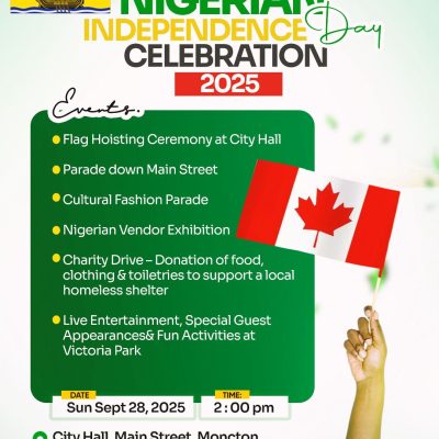 Nigerian Independence Celebrations 2025 – A Celebration of the Nigerian Culture, Fashion, Music and Arts in Greater Moncton, New Brunswick, Canada.